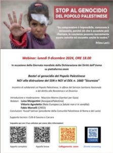 Lunedì 2 Dicembre 2024 Ore 18.00 Webinar di solidarietà con il Popolo Palestinese in difesa…